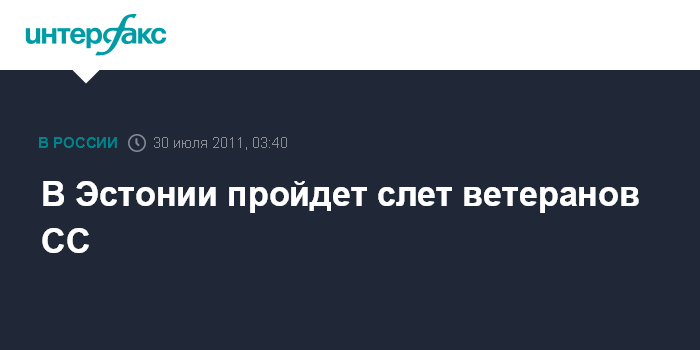 Таллин. 30 июля. ИНТЕРФАКС - В Эстонии в местечке Синимяэ (Sinimae) на северо-востоке страны пройдет слет ветеранов 20-й эстонской дивизии СС.