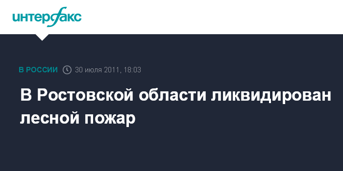 Ростов-на-Дону. 30 июля. INTERFAX.RU - Крупный лесной пожар ликвидирован в Обливском районе Ростовской области, сообщили агентству "Интерфакс-Юг" в районной администрации. "Пожар полностью ликвидирован в 17:00 мск субботы. В настоящее время принимаются меры к определению ущерба, нанесенного пожаром", - сказал собеседник агентства.