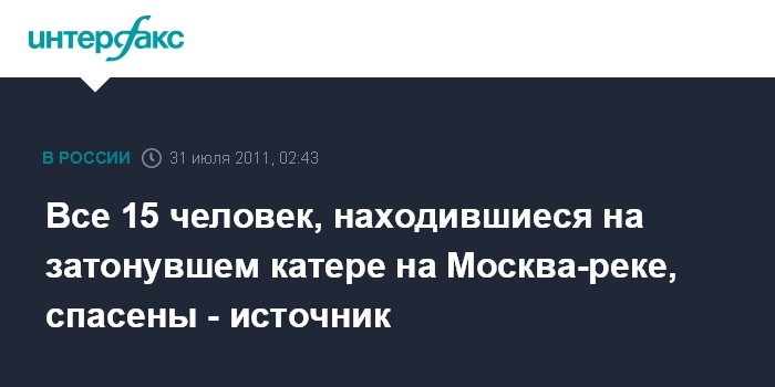 Между тем в ГУ МЧС РФ по Москве "Интерфаксу" заявили о том, что спасателям удалось поднять с затонувшего катера шесть человек.