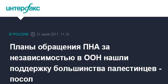 Планы обращения ПНА за независимостью в ООН нашли поддержку большинства палестинцев - посол