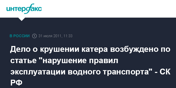 Дело о крушении катера возбуждено по статье "нарушение правил эксплуатации водного транспорта" - СК РФ