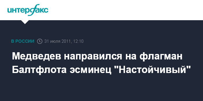 Медведев направился на флагман Балтфлота эсминец "Настойчивый"