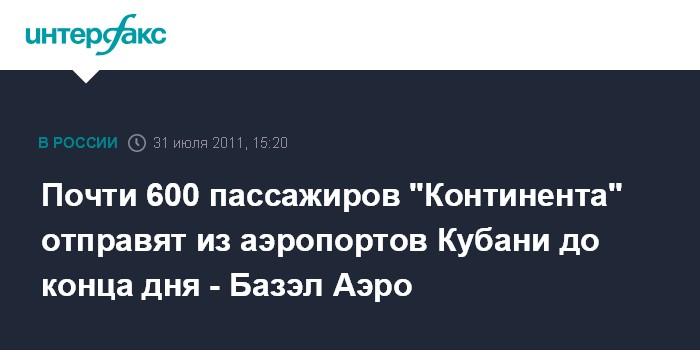 Сочи. 31 июля. INTERFAX.RU - Компания Базэл Аэро совместно с администрациями Краснодарского края и муниципалитетами регионов продолжают распределять по авиарейсам пассажиров компании - банкрота "Континент".