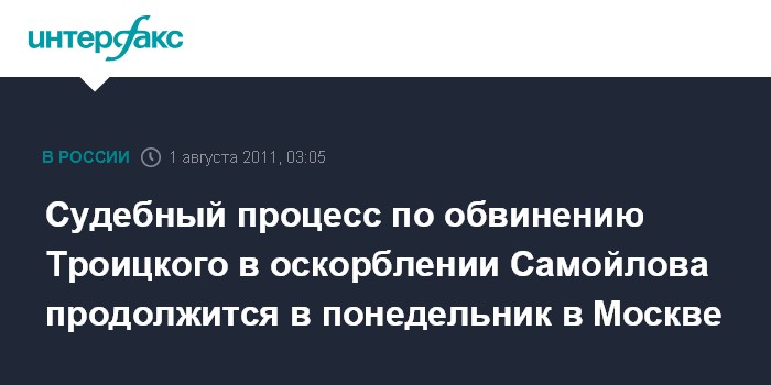 Судебный процесс по обвинению Троицкого в оскорблении Самойлова продолжится в понедельник в Москве