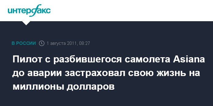Сеул. 1 августа. INTERFAX.RU - 52-летний пилот Цой Сан Ги с грузового лайнера Asiana, рухнувшего в море к юго-востоку от южнокорейского острова Чеджу 28 июля, за месяц до аварии застраховал свою жизнь на крупную сумму, пишет южнокорейская газета "Чосон ильбо".