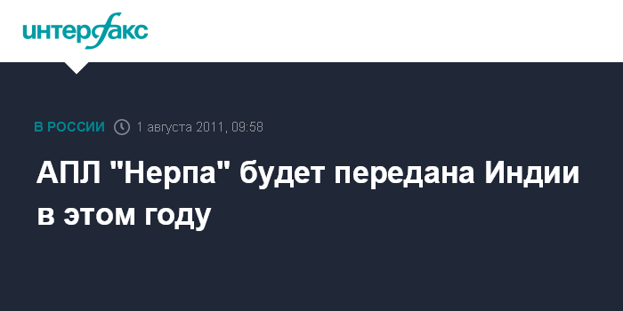 Москва. 1 августа. INTERFAX.RU - Российская атомная подводная лодка "Нерпа" будет передана в лизинг Индии до конца 2011 г., заявил "Интерфаксу-АВН" в воскресенье главком ВМФ России адмирал Владимир Высоцкий. "Каких-либо крупных препятствий для передачи подводной лодки ВМС Индии в этом году нет", - сказал он.