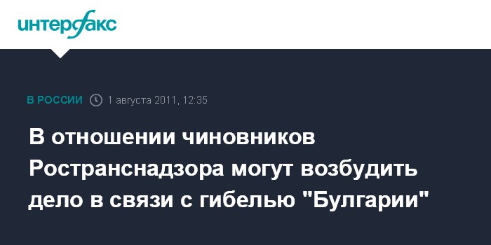 В отношении чиновников Ространснадзора могут возбудить дело в связи с гибелью "Булгарии"