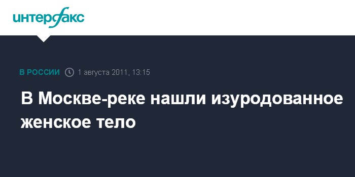 Москва. 1 августа. INTERFAX.RU - Труп женщины с отрубленными конечностями найден в Москве-реке в центре столицы, сообщил "Интерфаксу" источник в правоохранительных органах.
