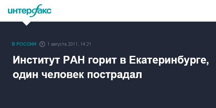 Институт РАН горит в Екатеринбурге, один человек пострадал