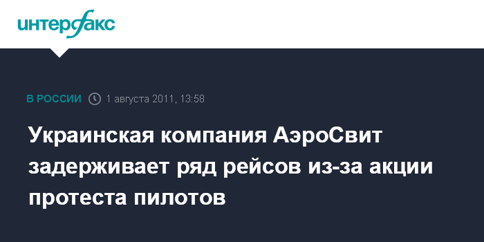 Киев. 1 августа. ИНТЕРФАКС-УКРАИНА - Ряд рейсов авиакомпании "АэроСвит" (Киев) задерживается в понедельник в связи с акцией протеста, проводимой пилотами самолетов Boeing-737.