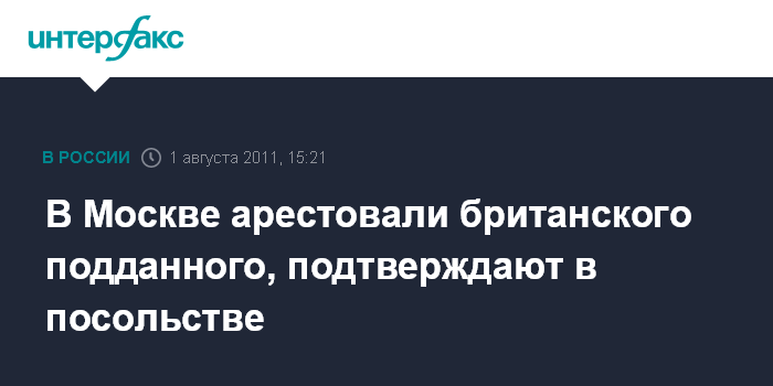 Москва. 1 августа. INTERFAX.RU - Посольство Великобритании подтверждает, что в Москве арестован подданный Соединенного Королевства.