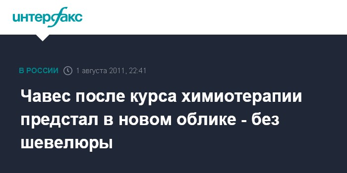 Каракас. 1 августа. ИНТЕРФАКС - Президент Венесуэлы Уго Чавес лишился волос после курса химиотерапии, сообщает агентство ЭФЭ.