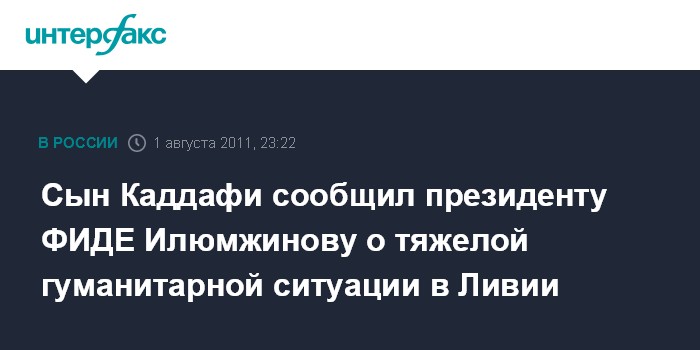 Сын Каддафи сообщил президенту ФИДЕ Илюмжинову о тяжелой гуманитарной ситуации в Ливии