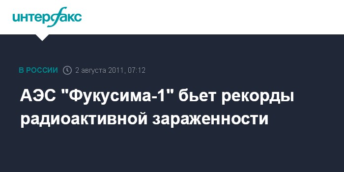 Токио. 2 августа. ИНТЕРФАКС-ДАЛЬНИЙ ВОСТОК - Компания-оператор аварийной японской АЭС "Фукусима-1" TEPCO объявила о регистрации уровня радиации в 10 тыс. миллизивертов в час над станцией, что является максимальным показателем с момента катастрофы 11 марта, сообщают японские СМИ.