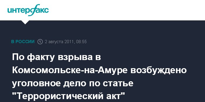 По факту взрыва в Комсомольске-на-Амуре возбуждено уголовное дело по статье "Террористический акт"