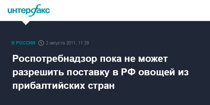 Москва. 2 августа. INTERFAX.RU - Прибалтийские страны не представили необходимых документов для того, чтобы возобновить поставки овощной продукции в Россию, заявил "Интерфаксу" во вторник руководитель Роспотребнадзора, главный государственный санитарный врач РФ Геннадий Онищенко. "Должным образом оформленных документов пока не поступило", - сказал Онищенко о Литве, Латвии и Эстонии.