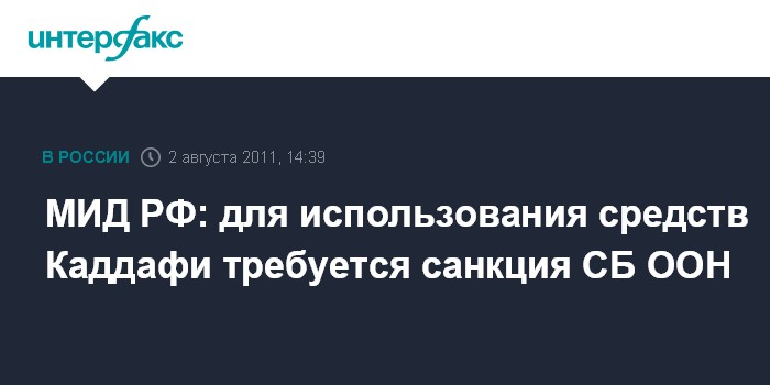 МИД РФ: для использования средств Каддафи требуется санкция СБ ООН
