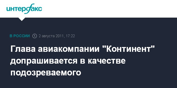 Глава авиакомпании "Континент" допрашивается в качестве подозреваемого