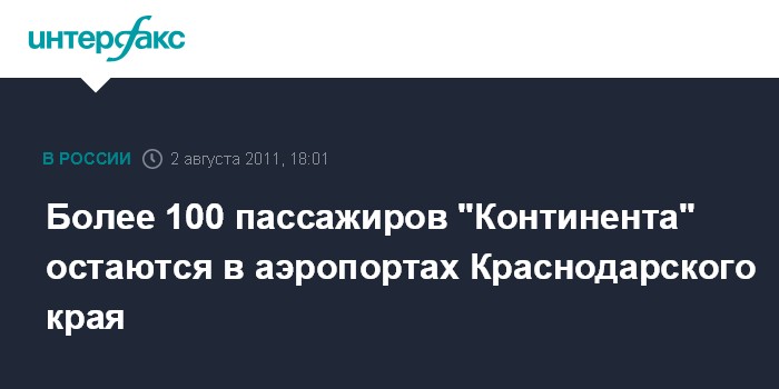 Томск. 2 августа. INTERFAX.RU - В аэропортах Сочи, Анапы и Краснодара по данным на вторник остаются ночевать около 120 пассажиров авиакомпании "Континент", сообщил агентству "Интерфакс-Сибирь" генеральный директор управляющего аэропортами ООО "Базэл Аэро" Сергей Лихарев.