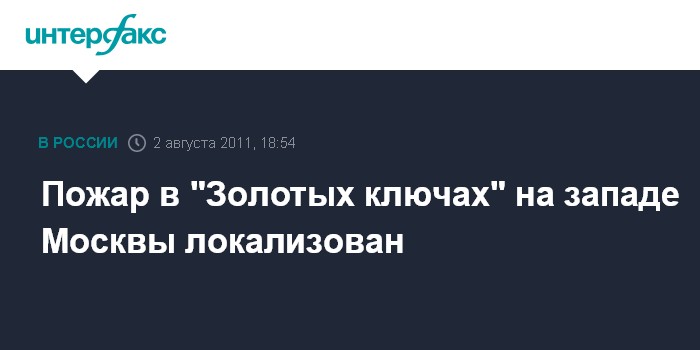Москва. 2 августа. INTERFAX.RU - Локализован пожар в комплексе "Золотые ключи" на западе Москвы, сообщил "Интерфаксу" источник в правоохранительных органах.