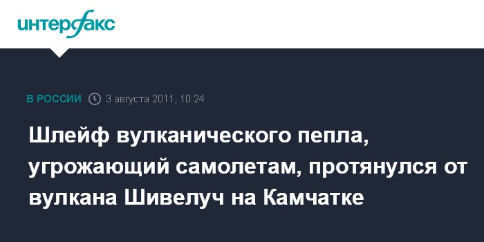 Шлейф вулканического пепла, угрожающий самолетам, протянулся от вулкана Шивелуч на Камчатке