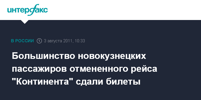 Начальник службы организации перевозок ООО "Аэрокузбасс" (аэропорт "Спиченково", Новокузнецк) Галина Шкурко сообщила агентству "Интерфакс-Сибирь", что большая часть пассажиров отмененного рейса сдали билеты, еще несколько человек, имевших возможность вылететь другой авиакомпанией, отказались от полета.