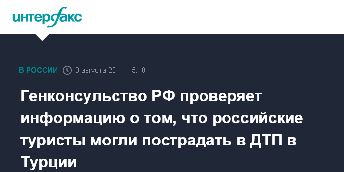 Анталья (Турция). 3 августа. INTERFAX.RU - Российское Генконсульство в Анталье проверяет информацию о том, что граждане России могли пострадать в ДТП, произошедшем в Турции в среду.