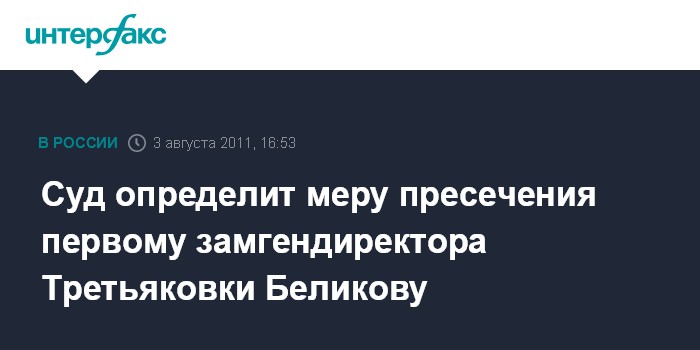 Суд определит меру пресечения первому замгендиректора Третьяковки Беликову