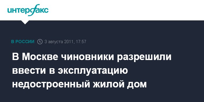 В Москве чиновники разрешили ввести в эксплуатацию недостроенный жилой дом