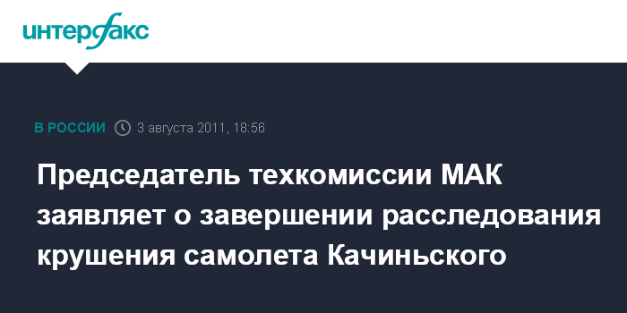 Председатель техкомиссии МАК заявляет о завершении расследования крушения самолета Качиньского