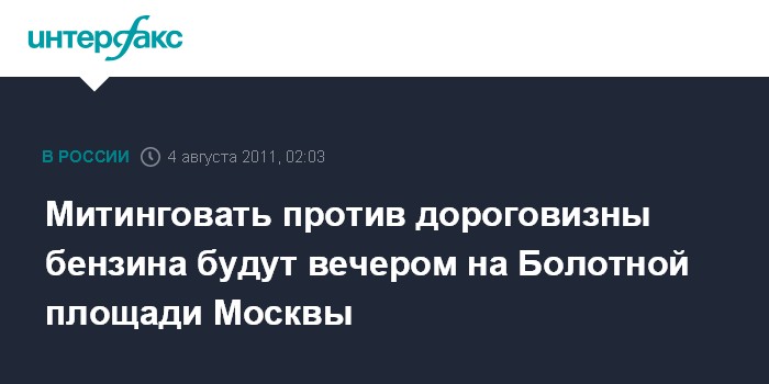 "4 августа в 19:00 на Болотной площади в Москве пройдет митинг в рамках всероссийской акции против роста цен на бензин", - сообщил собеседник агентства.