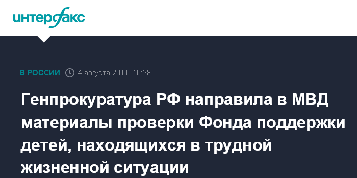 Генпрокуратура РФ направила в МВД материалы проверки Фонда поддержки детей, находящихся в трудной жизненной ситуации