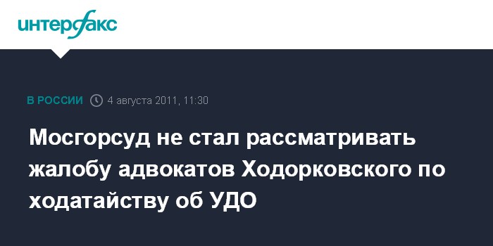 Мосгорсуд не стал рассматривать жалобу адвокатов Ходорковского по ходатайству об УДО