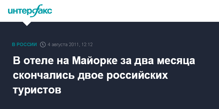 Москва. 4 августа. INTERFAX.RU - На испанском острове Майорка этим летом в отеле Luna Tropical Park 3* скончались пять иностранных туристов, двое из которых - россияне, сообщила порталу "Интерфакс-Туризм" генеральный директор Балтийской ассоциации защиты прав потребителей Татьяна Касьянова в четверг. Она со ссылкой на испанские СМИ сказала, что 18 июня в этом отеле скончался россиянин, в начале июля - иностранная туристка, 16 июля - 29-летняя Елена Полищук из Санкт-Петербурга, 20 июля - французский турист и 29 июля - девушка 15-лет, предположительно, гражданка Германии. "Любопытно, что все умершие проживали на пятом этаже этого отеля и, по сообщениям испанских СМИ, они скончались из-за утечки угарного газа, что связано с плохой работой кондиционеров", - отметила Касьянова.