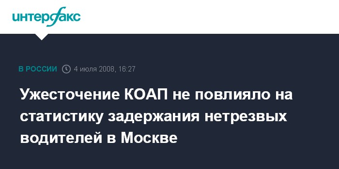 Ужесточение КОАП не повлияло на статистику задержания нетрезвых водителей в Москве