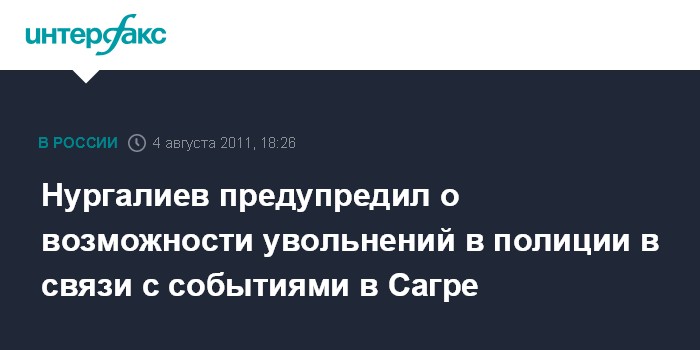 Екатеринбург. 4 августа. INTERFAX.RU - Глава МВД РФ Рашид Нургалиев потребовал в кратчайшие сроки устранить недостатки в работе правоохранительных органов, сделавшие возможным конфликт в поселке Сагра Свердловской области. "Не исключено, что может рассматриваться вопрос об увольнении тех, кто это заслужил", - добавил министр.