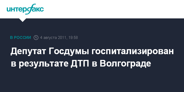 Депутат Госдумы госпитализирован в результате ДТП в Волгограде