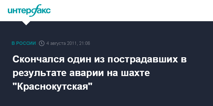 Скончался один из пострадавших в результате аварии на шахте "Краснокутская"