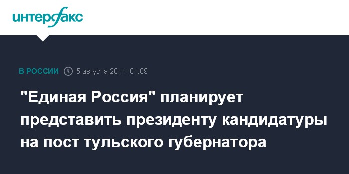 "Единая Россия" планирует представить президенту кандидатуры на пост тульского губернатора