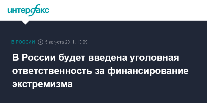 В России будет введена уголовная ответственность за финансирование экстремизма