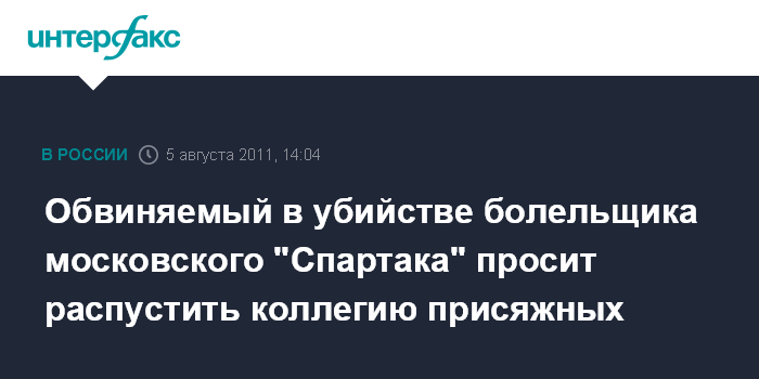 Москва. 5 августа. INTERFAX.RU - Обвиняемый в убийстве футбольного болельщика Егора Свиридова Аслан Черкесов потребовал у суда распустить коллегию присяжных. Как передал корреспондент "Интерфакса", во время оглашения фабулы обвинительного заключения прокурор Мария Семененко сообщила, что накануне убийства Свиридова Черкесов имел конфликт с "лицами славянской национальности" и применял травматическое оружие.