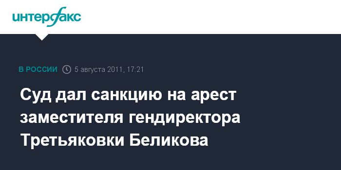 Суд дал санкцию на арест заместителя гендиректора Третьяковки Беликова