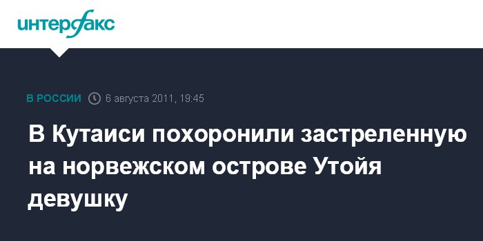 Тбилиси. 6 августа. ИНТЕРФАКС - В Кутаиси в субботу состоялась церемония похорон погибшей в Норвегии во время нападения террориста на молодежный лагерь на острове Утойя грузинской студентки Тамты Липартелиани.