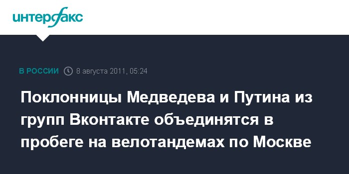 Поклонницы Медведева и Путина из групп Вконтакте объединятся в пробеге на велотандемах по Москве