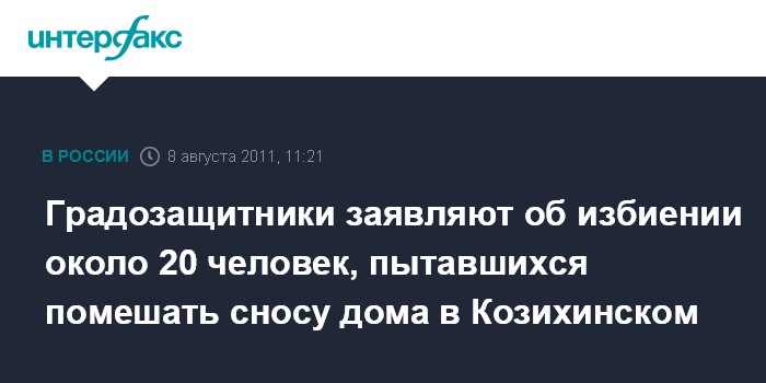 Москва. 8 августа. INTERFAX.RU- Исторический дом в Большом Козихинском переулке снесен, а около 20 градозащитников избиты, заявляют в Коалиции "В защиту Москвы".