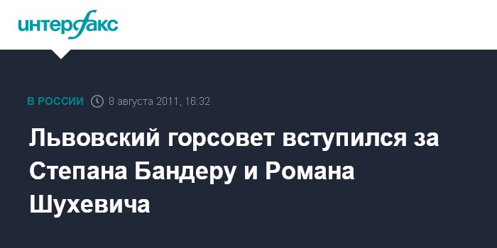 Киев. 8 августа. INTERFAX.RU - Львовский городской совет заявляет, что главнокомандующий Украинской повстанческой армии (УПА) Роман Шухевич и лидер Организации украинских националистов (ОУН) Степан Бандера являются героями Украины независимо от решения "украиноненавистников".