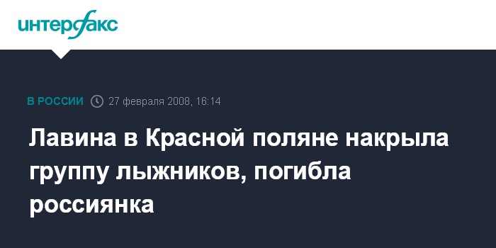 Ростов-на-Дону/Сочи. 27 февраля. INTERFAX.RU - В среду в районе Красной поляны (Сочи) сошла снежная лавина. По предварительным данным, при этом погибла москвичка Ксения Свердлова 1963 года рождения. В пресс-службе ЮРЦ МЧС РФ "Интерфаксу" сообщили, что пострадал еще один человек - турист из ФРГ.