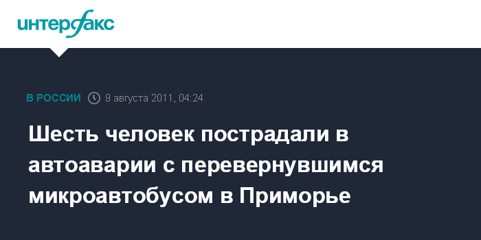 Владивосток. 9 августа. ИНТЕРФАКС-ДАЛЬНИЙ ВОСТОК - В Партизанском районе Приморского края в результате опрокидывания микроавтобуса пострадали шесть человек, в том числе дети четырех и 12 лет.