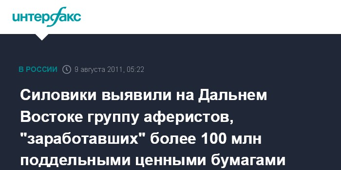 Силовики выявили на Дальнем Востоке группу аферистов, "заработавших" более 100 млн поддельными ценными бумагами
