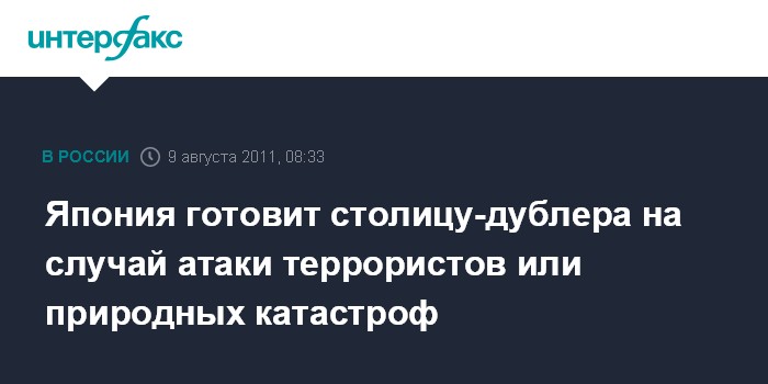 Токио. 9 августа. INTERFAX.RU - Специальная правительственная комиссия обсудит идею создания столицы-дублера, которая займет место Токио в случае террористической атаки или стихийного бедствия.